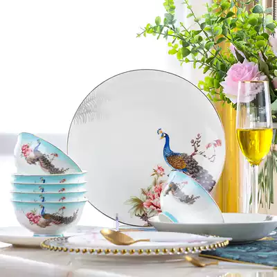 Bone China tableware dishes set Household European-style ceramic dishes and chopsticks Jingdezhen simple Chinese dishes set ceramics