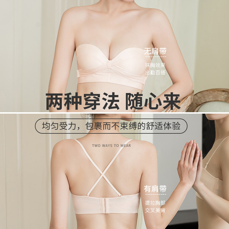 Summer strapless underwear women's small chest gathered non-slip wedding dress invisible bra sticker tube top thin wrap chest dress special