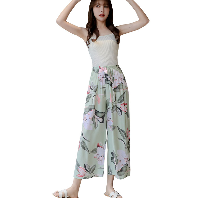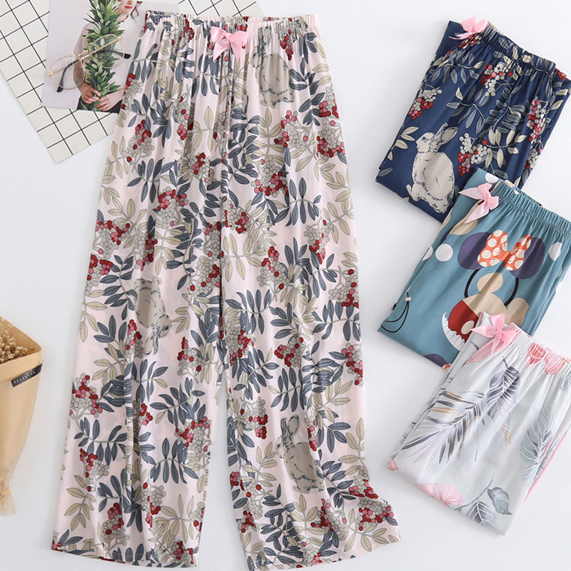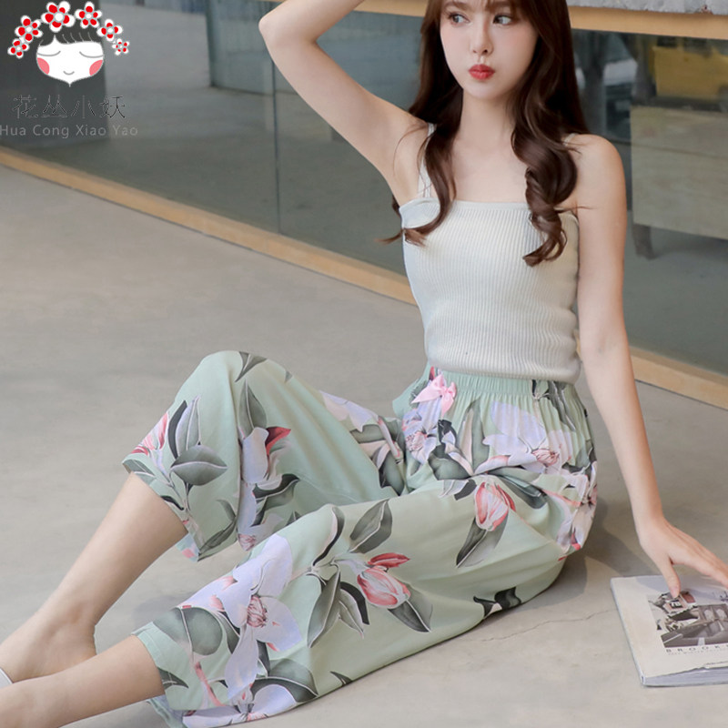Summer Girls Mid Youth Cotton Silk Single Pants Cotton medium long pants artificial cotton Home Single beach Sleeping Pants can be worn outside