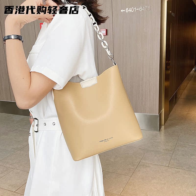 French Special Cabinet Women's Bag New Superior Sense Genuine Leather Fashion Light Lavish Hand Bucket Bag Single Shoulder Diagonal Satchel Bag