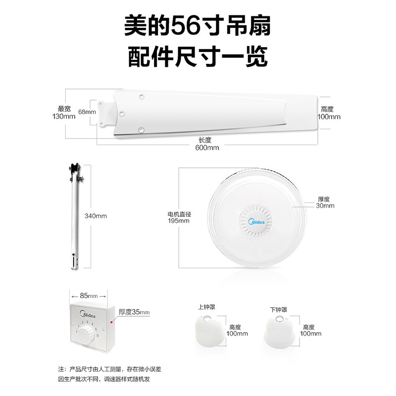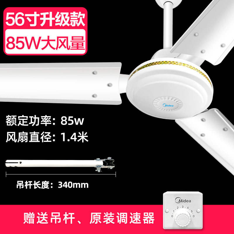 Midea ceiling fan Big wind fan Household silent dining room Commercial suspended ceiling living room Dormitory factory industrial 56 inches