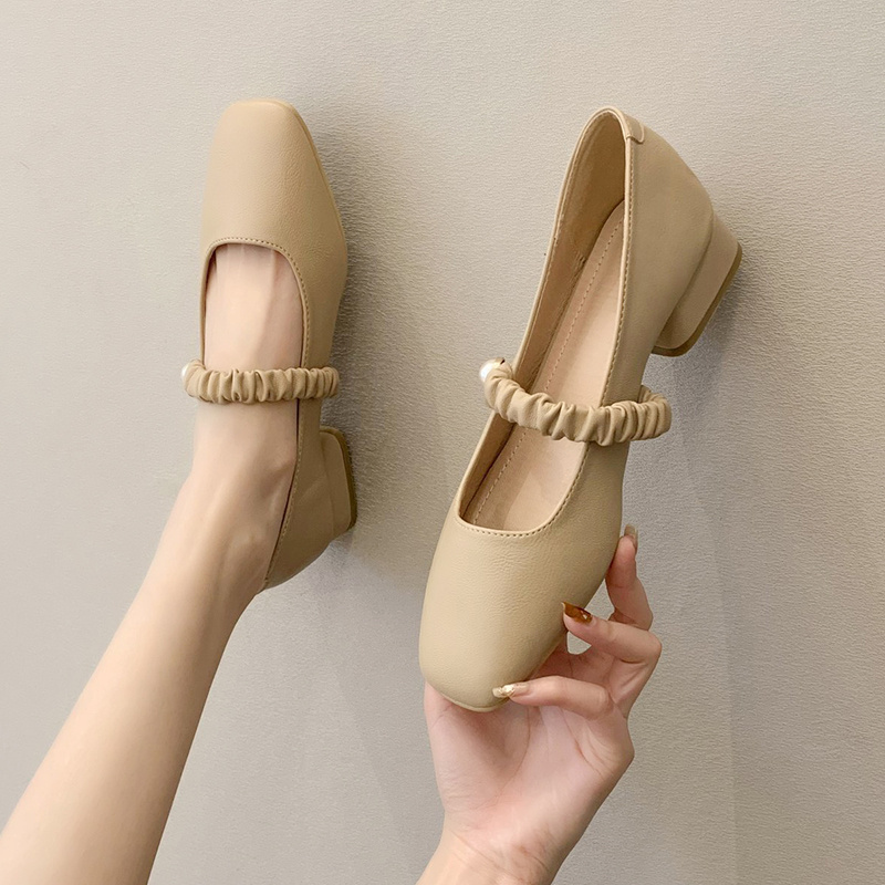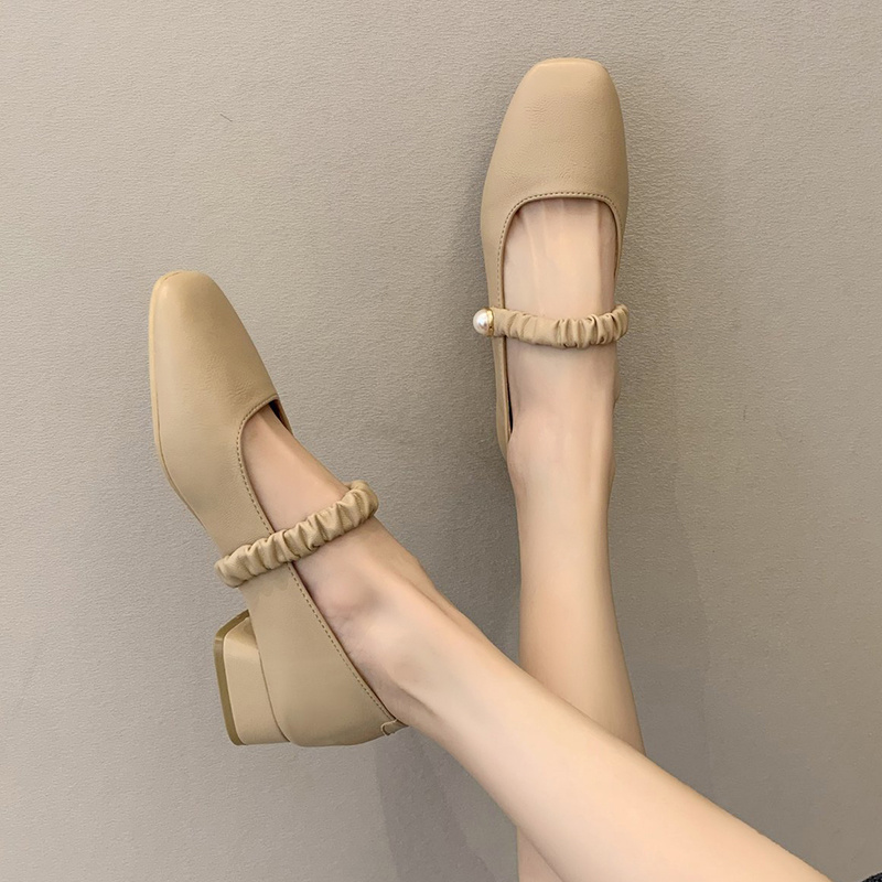 Square Head Shoes 2021 Spring paragraph Girl Coarse Heels Fairy Maid Style Retro Mary Precious Bean Shoes Late Evening Wind Gentle Shoes