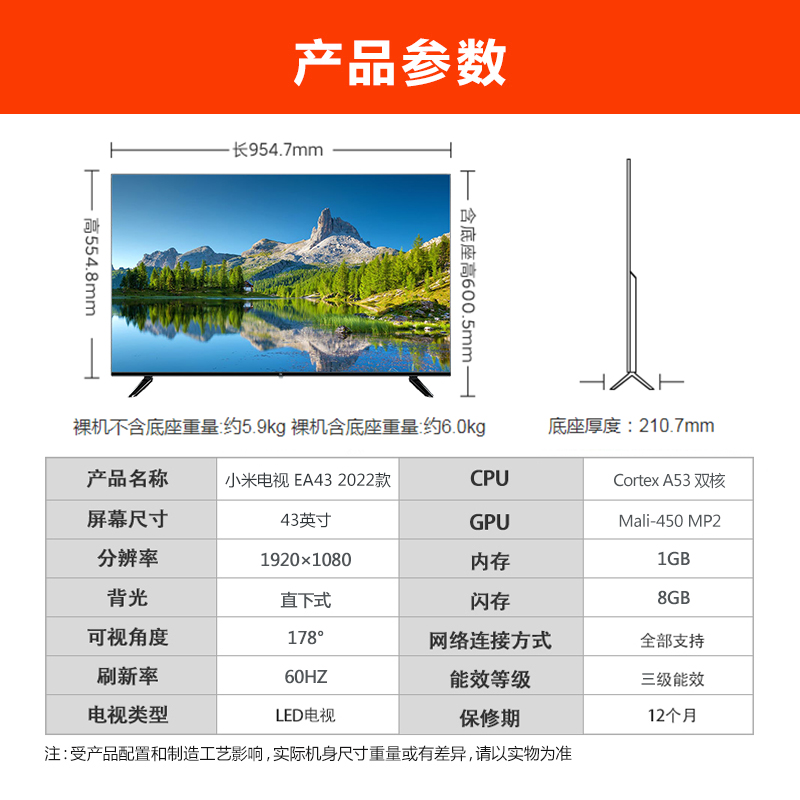 Xiaomi TV EA43 inch E43S ultra high definition Full screen voice intelligent Internet liquid crystal es43 40