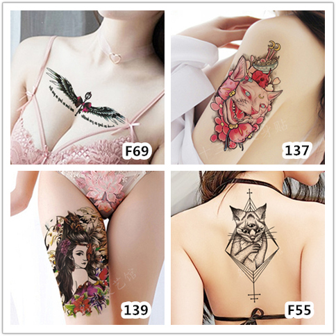 Geisha tattoo stickers waterproof men and women long-lasting flower arm a Korean sex ins wind leg arm realistic sticker tattoo