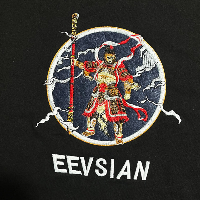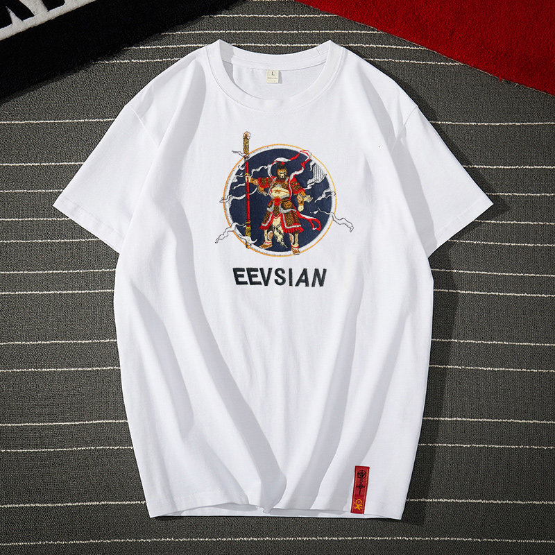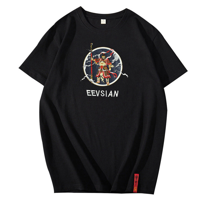 Embroidered T-shirt men's national tide short-sleeved Chinese style Wukong trend fat guy big size personality fat loose Harajuku trend