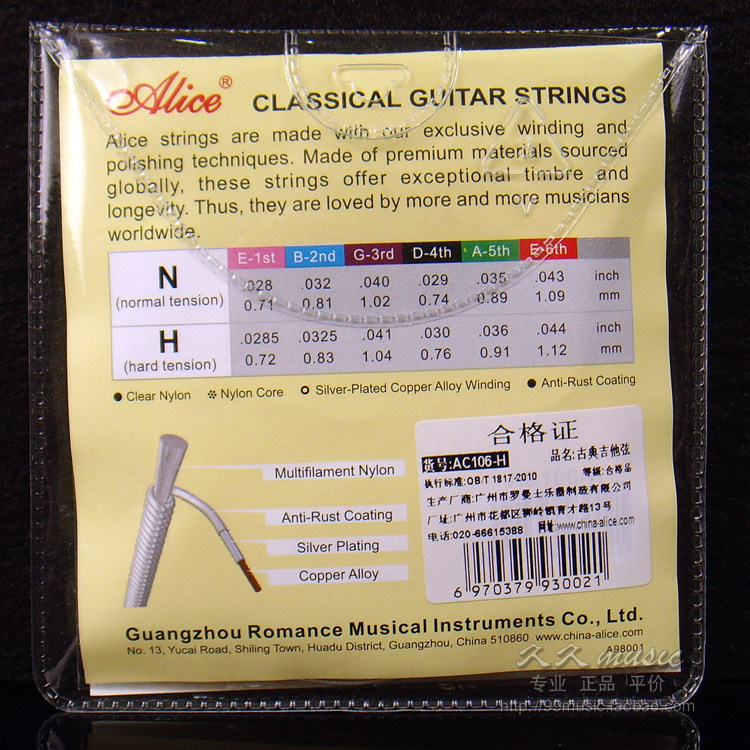 Alice Alice AC106-H Classical guitar strings Nylon Strings High Tension Suit Outlet type A106