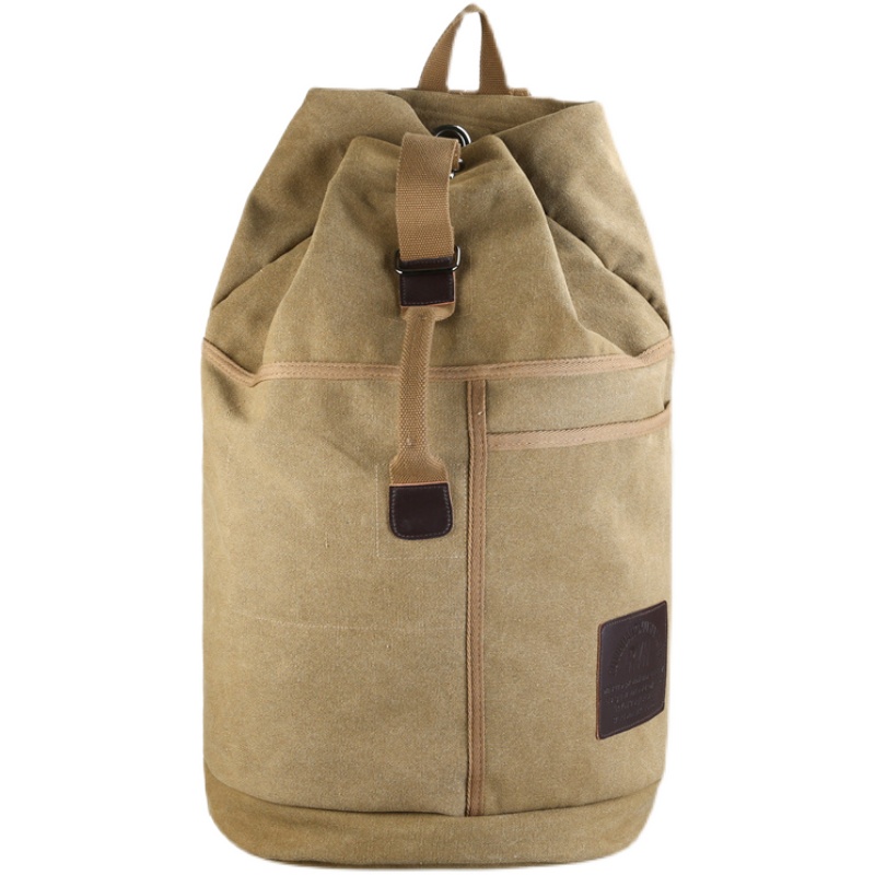 Large-capacity backpack student schoolbag outdoor mountaineering travel backpack canvas round bucket type casual portable men