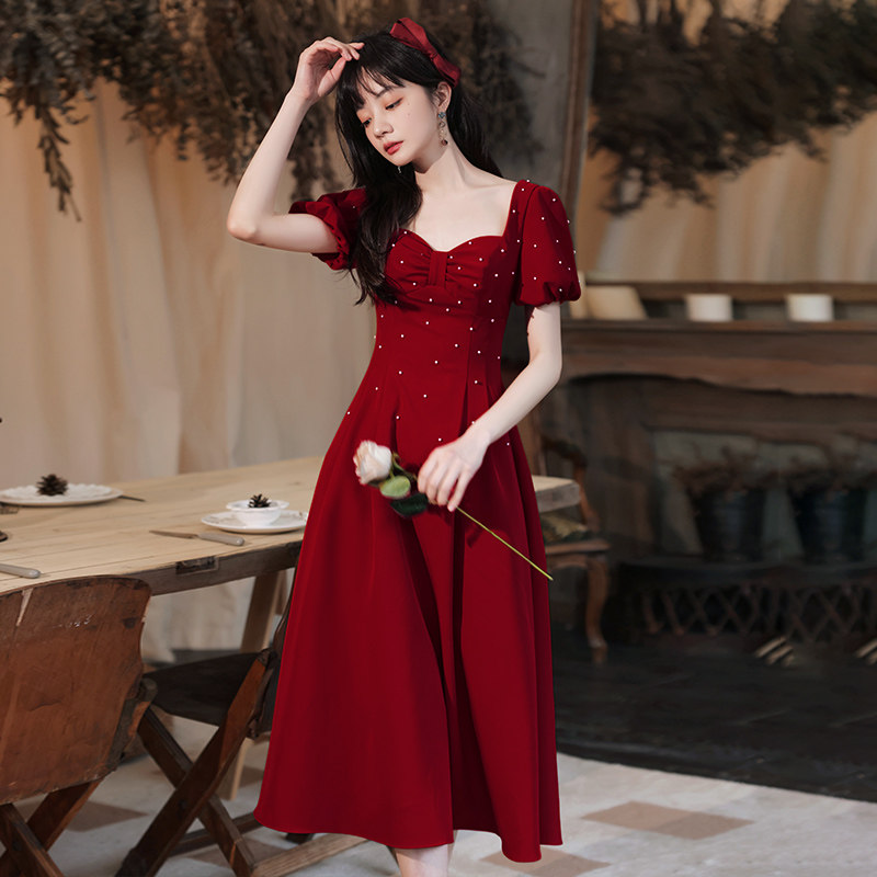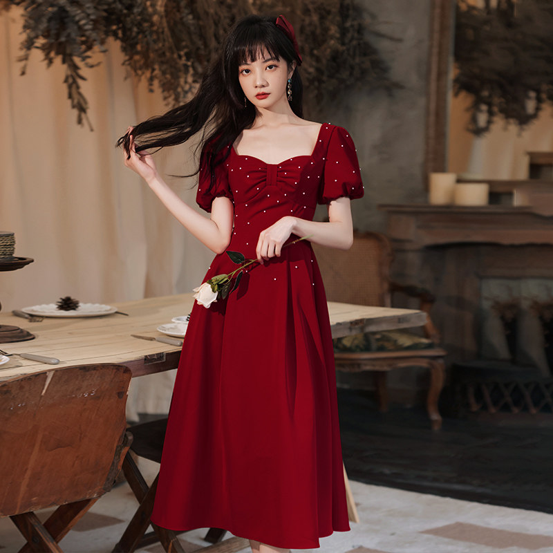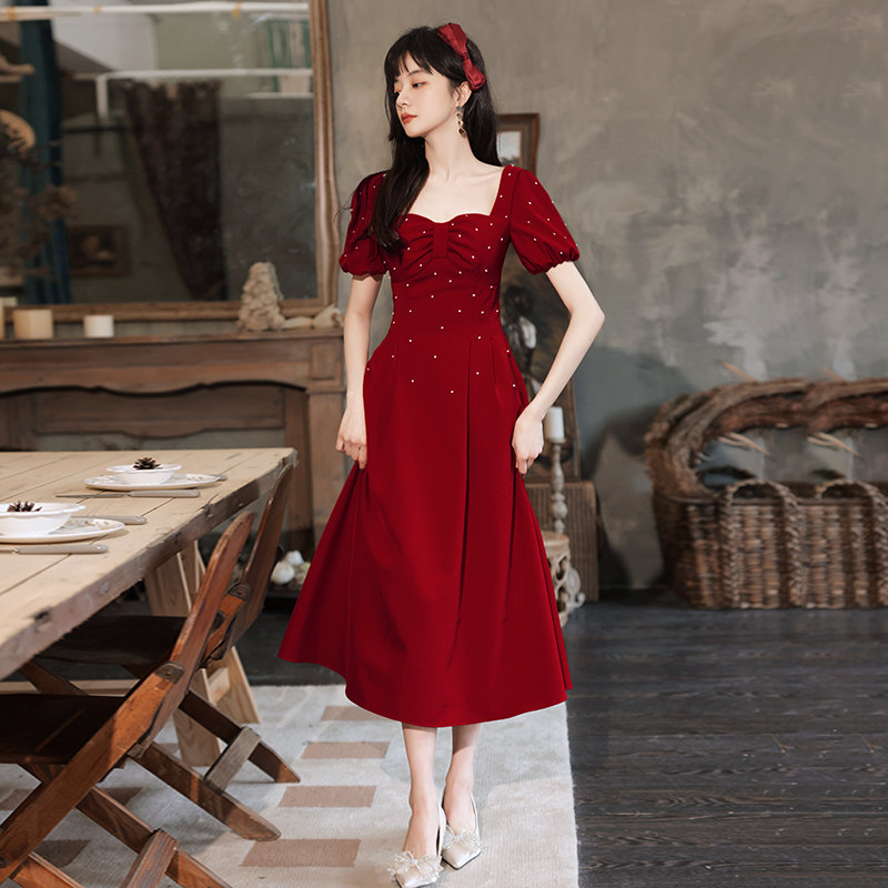 Wine Red small child bride to be married to a fugitive princess who can normally wear a 2022 new engagement foreign dress