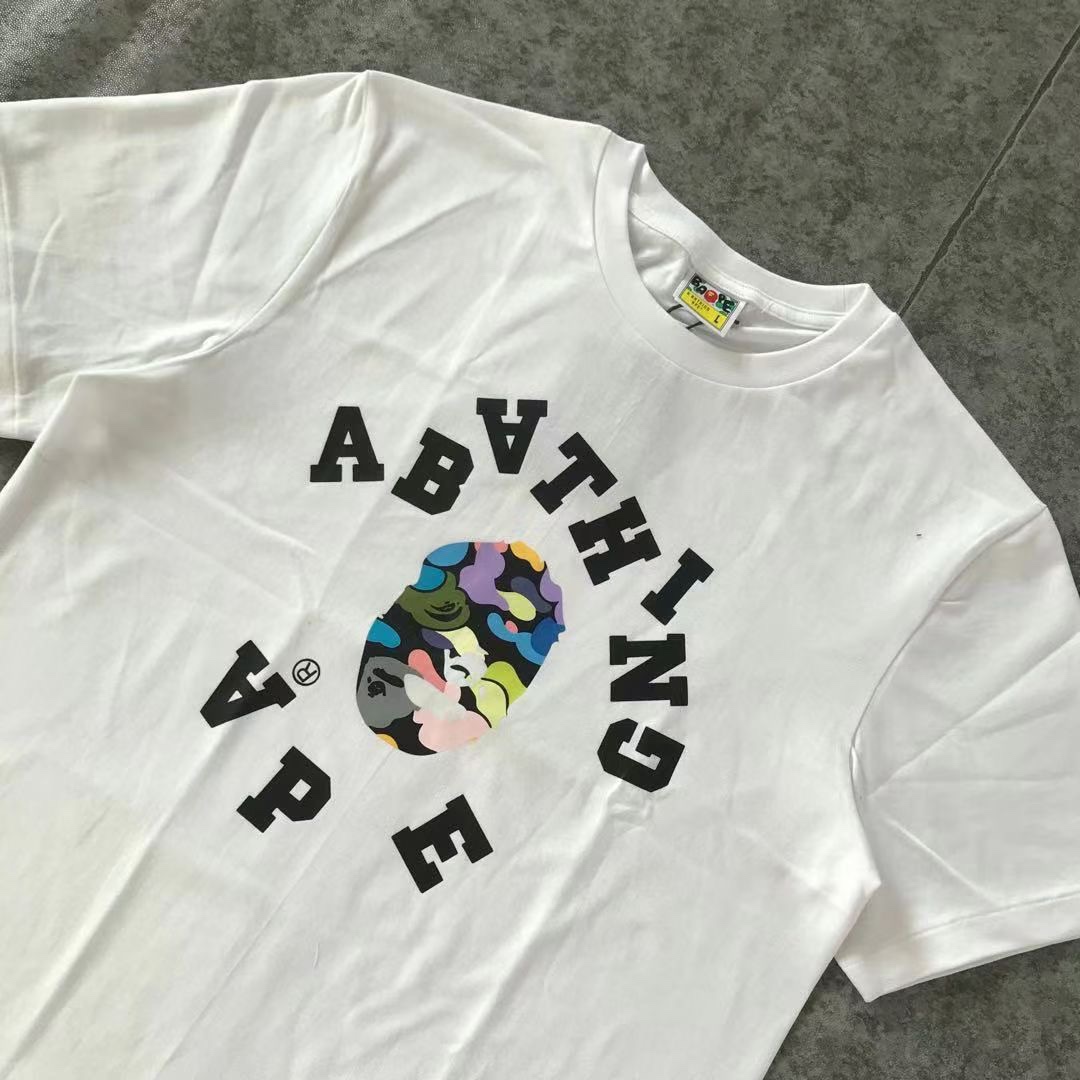 Japan Tide brand Bape camouflage letters short sleeve men and women couples apes apes head beggar spoof printed cotton T-shirt