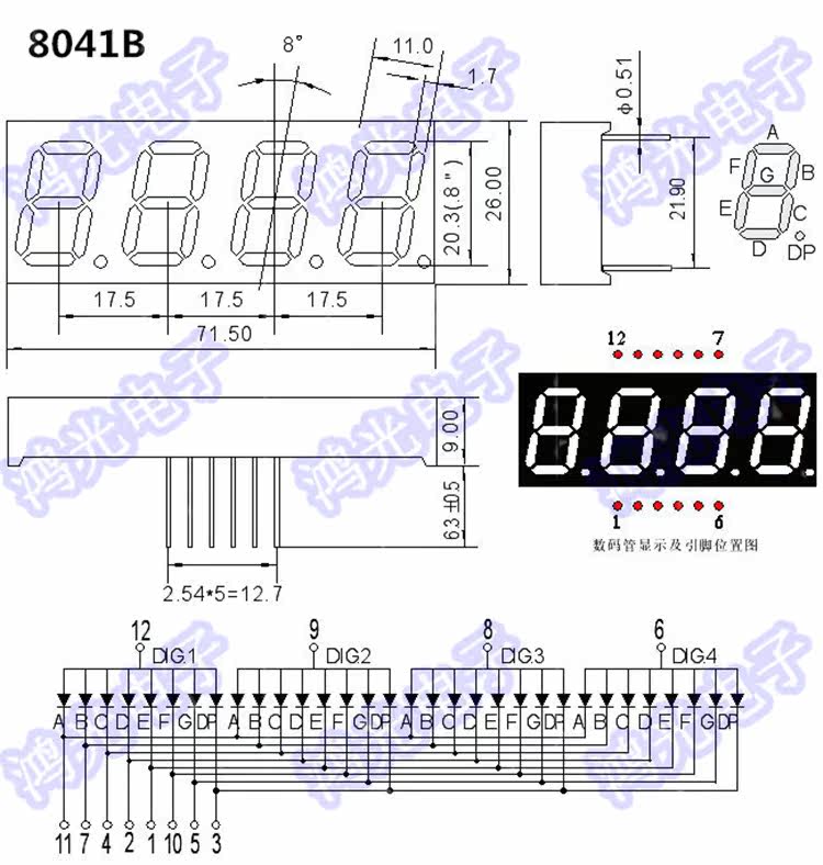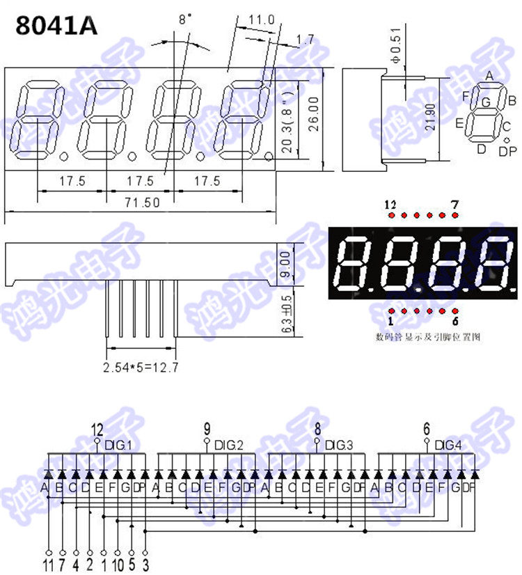 0 8-inch 4-digit four-digit glow tube with high brightness common shade green light green light 8401AGG 8041BGG