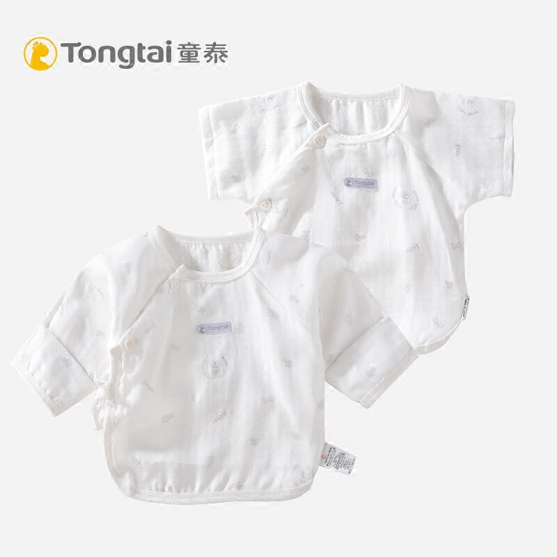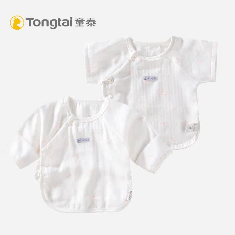 Baby's baby's summer pure cotton thin gauze tops anti - urine wet cotton half - backcoat 2 pieces