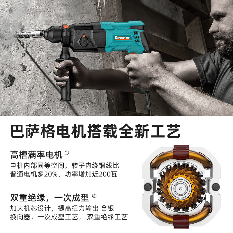Basag electric hammer light electric pick electric drill dual-purpose multi-purpose household high-power impact drill three-purpose electric hammer light hammer