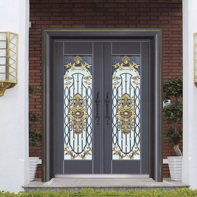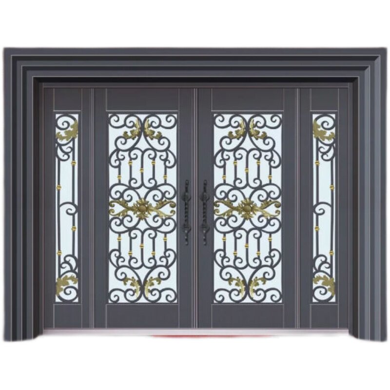 Villa gate entrance open door of imitation bronze steel security door zinc alloy rural door engineering door courtyard gate