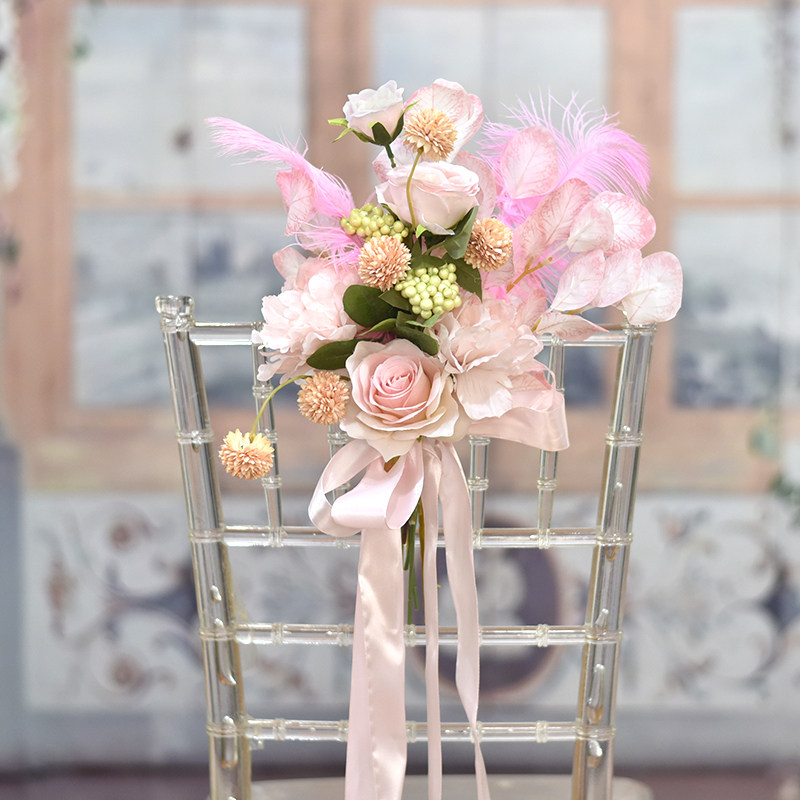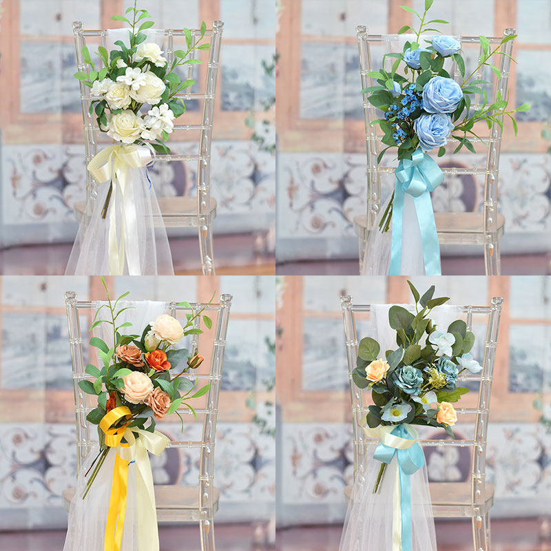 New simulation flower chair back flower silk bouquet church business banquet celebration door decoration staircase outdoor wedding decoration