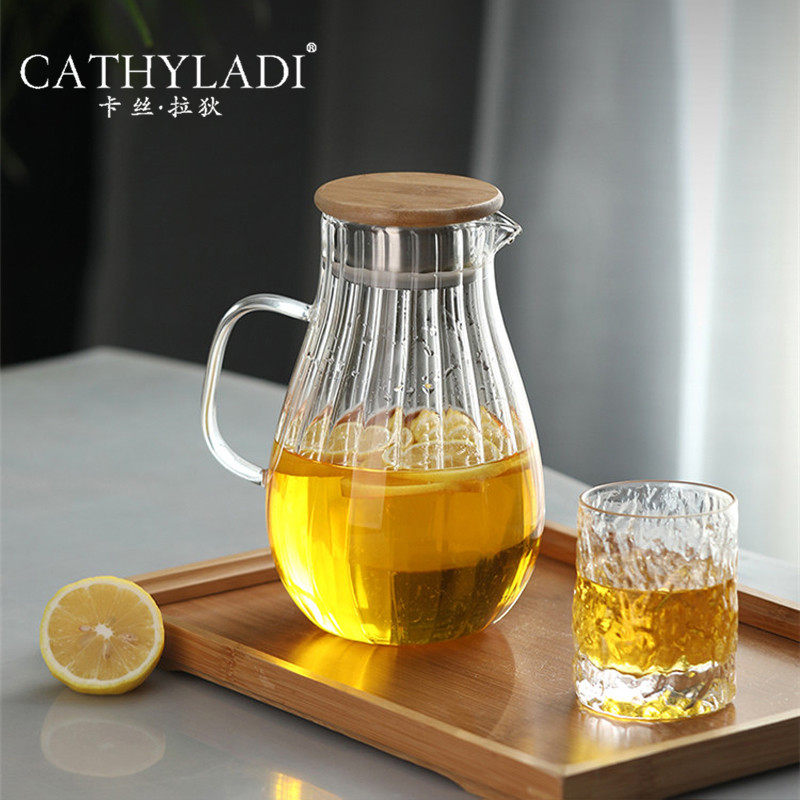 Cathyladi large-capacity glass cold water jug home simple heat-resistant high-temperature-resistant jug retro-style juice jug