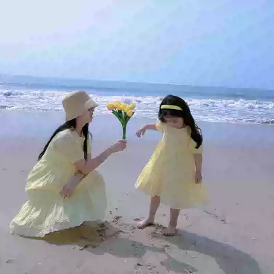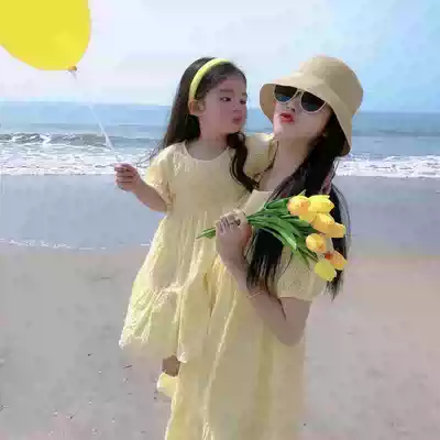 Parent-child mother dress 2021 summer new girl embroidered hollow princess dress beach holiday skirt