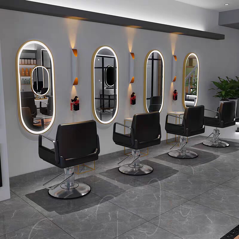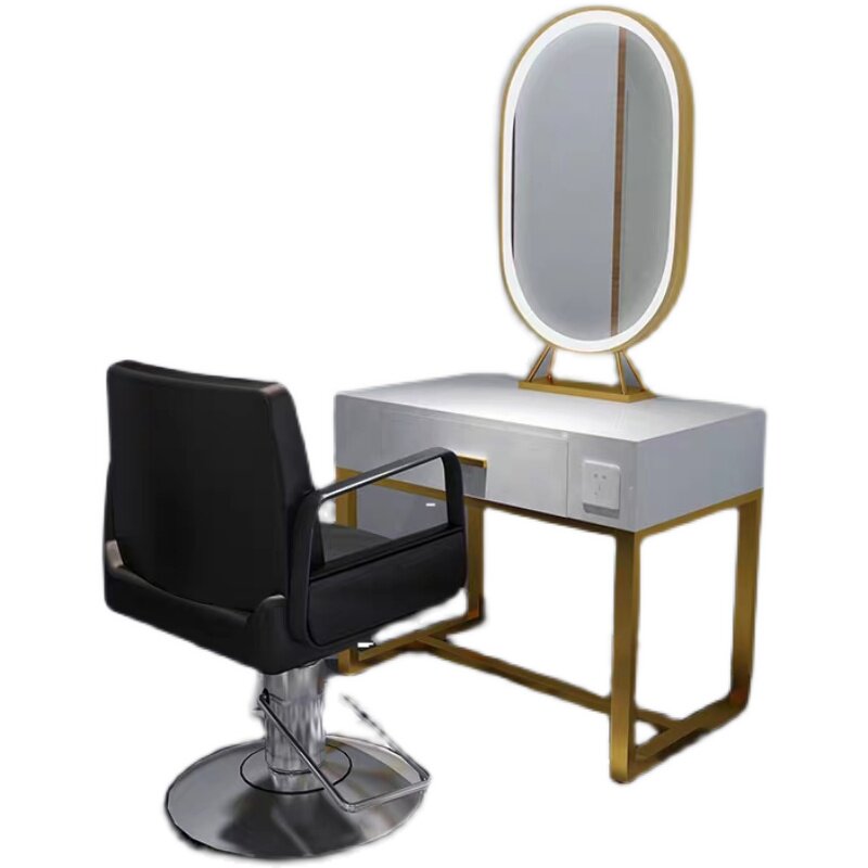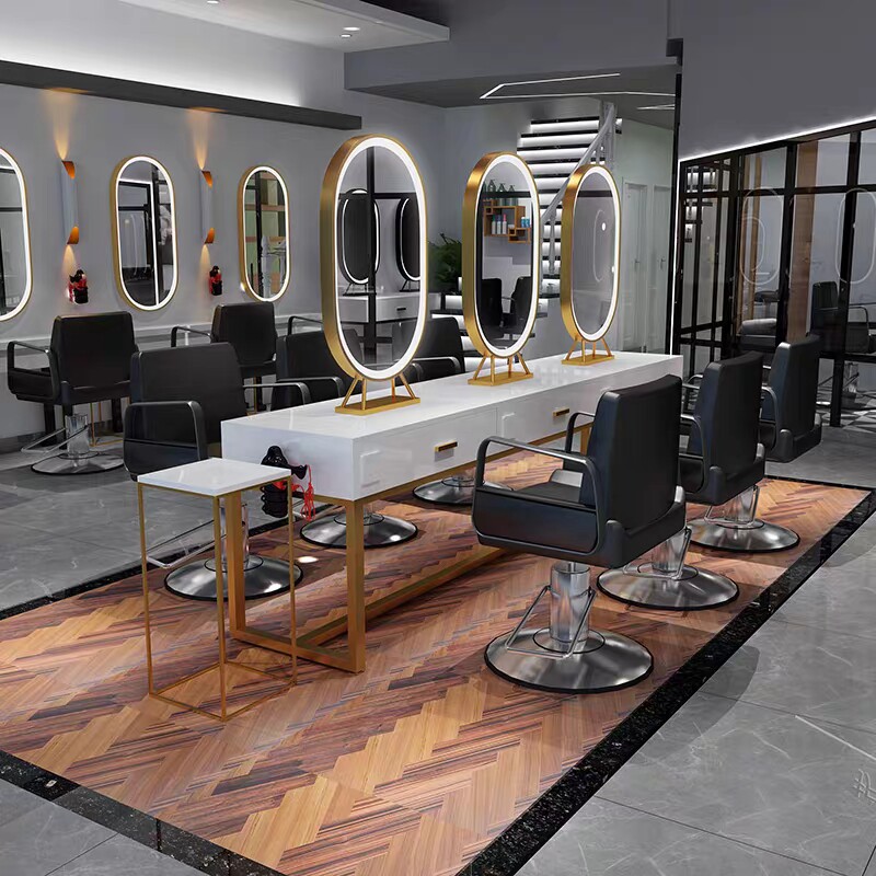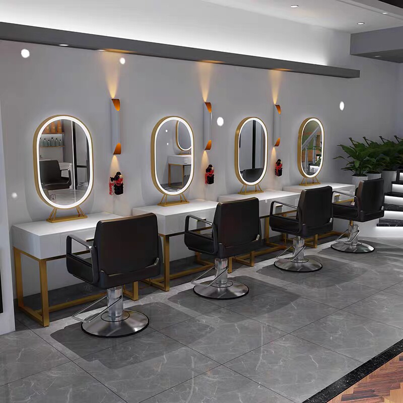 Simple modern hair salon Barber shop special mirror table single double-sided beauty salon luminous mirror photo studio makeup mirror with lamp