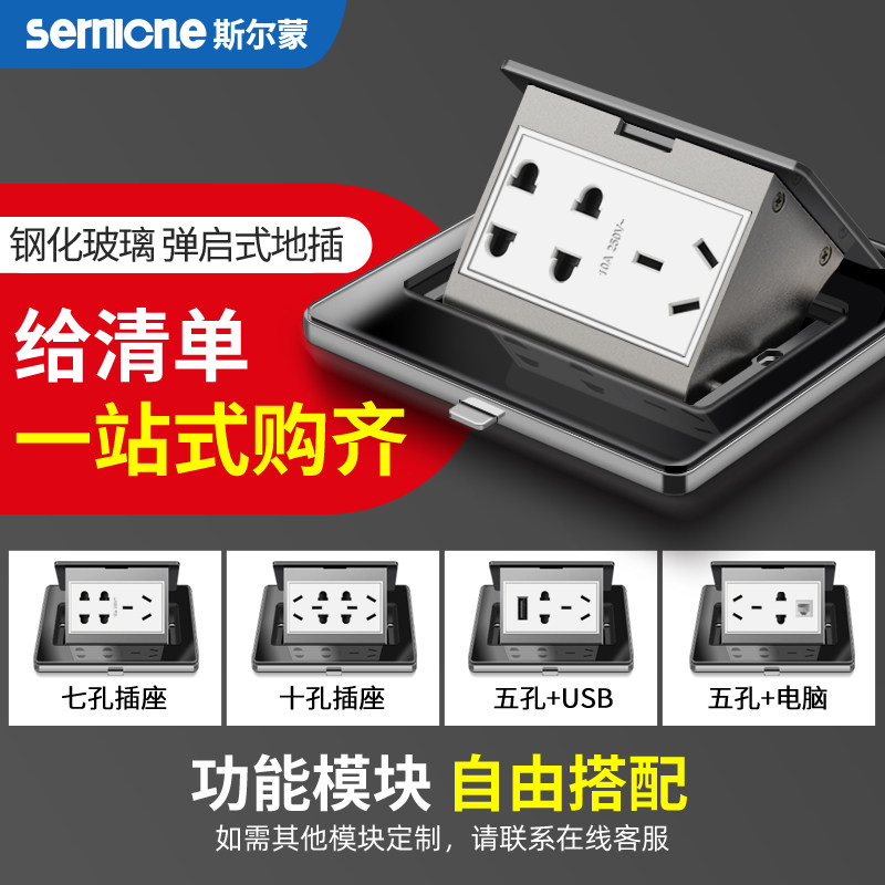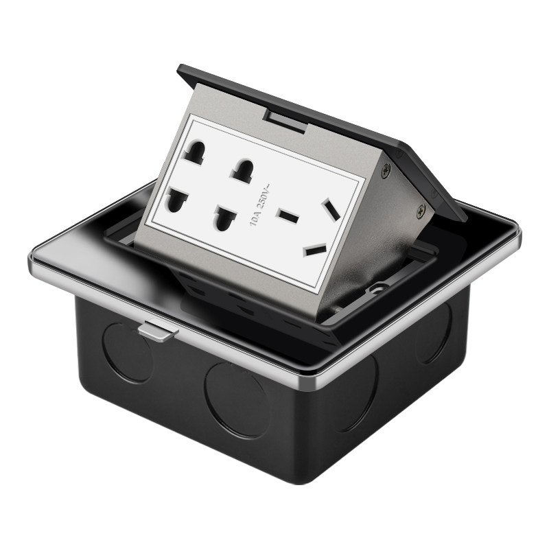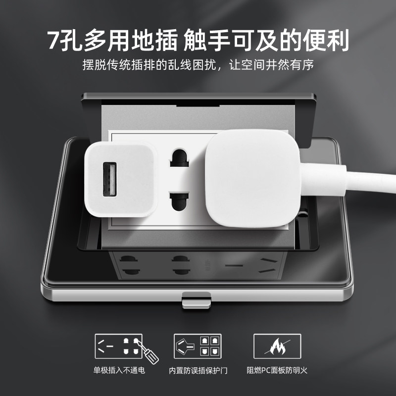 Gray tempered glass panel invisible flat ground socket hidden waterproof five-hole network ground plug all copper socket