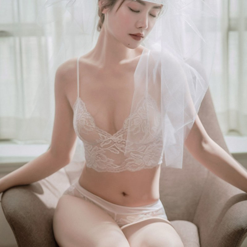 French ultra-thin sling underwear women lace without steel ring small chest vest bra outside wear beautiful back mesh bra summer