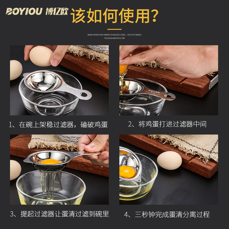 Bo Yiou 304 stainless steel egg yolk egg white protein separator egg liquid filter egg separator egg separator