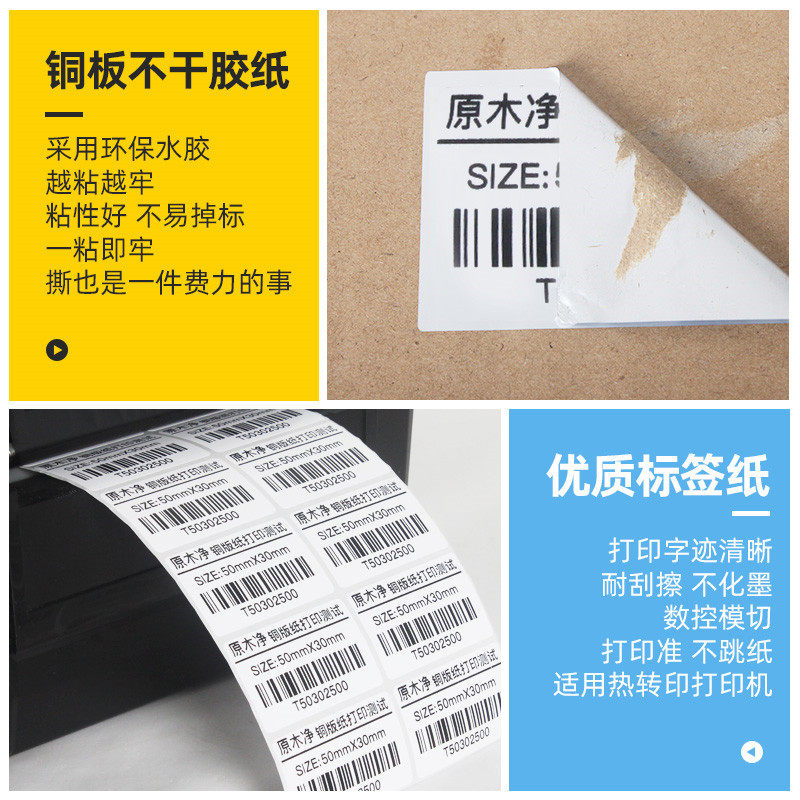 Log net whole box coated paper self-adhesive label 32*19 20 30 40 50 60 70 80 100 copper plate sticker barcode printing paper label clothing tag sticker customized