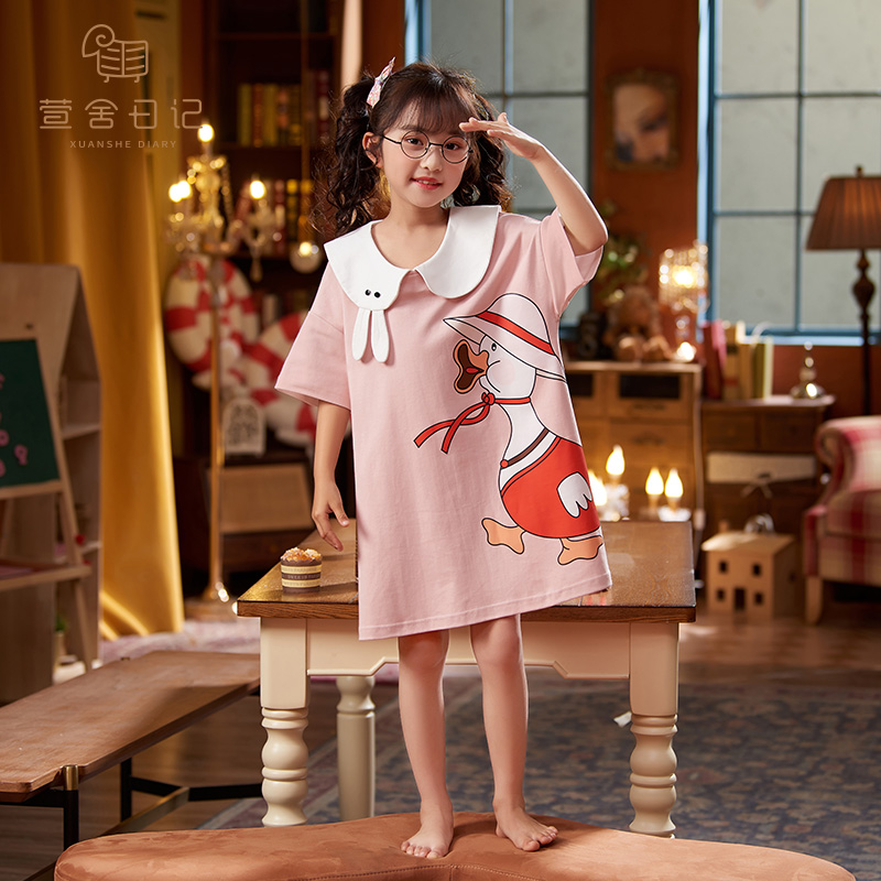 Girl Sleeping Dress Summer Thin girl Princess Wind Baby Baby Girl Pure Cotton Pyjamas Summer Cartoon Skirts