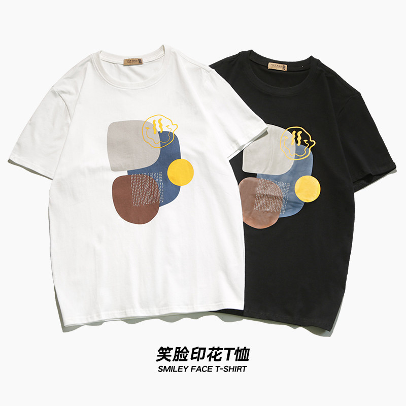 2022 New Summer Men Short - Led Han Edition Current Half - sleeved White T - shirt Men