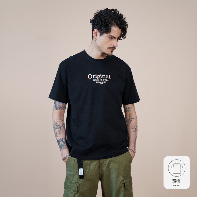 Simwood Jianmu men's clothing(loose version) Heavy art embroidery theme T-shirt European and American wild short-sleeved men