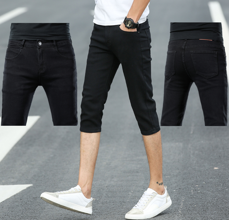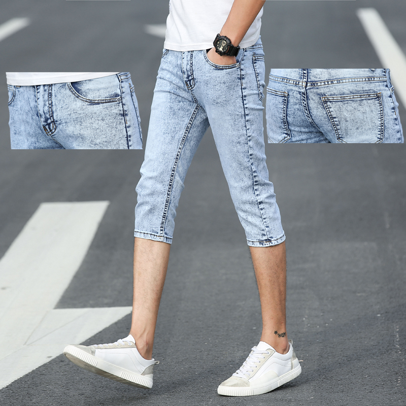 Jeans Men's Cropped Pants Summer New Snowflake Gray Casual Elastic Thin Section Korean Trend Slim Fit Cigarette Pants