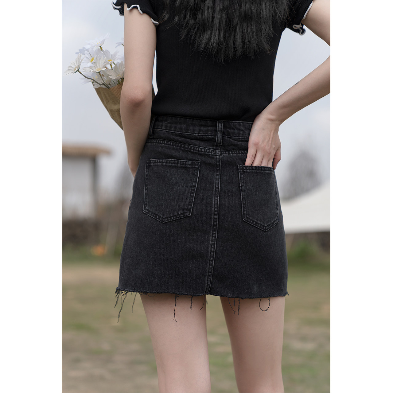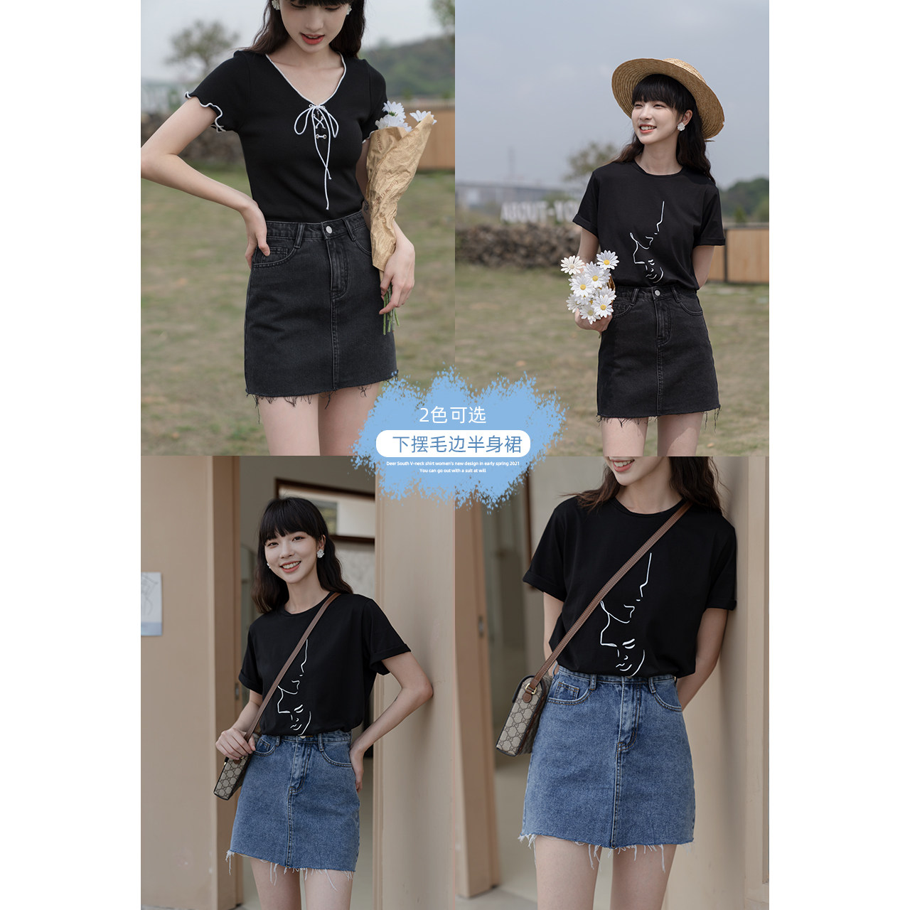 Deer South Black Cowboy Half Body Dress 2022 New Design Sensation Slim Fit Slim Short Dress Fashion A Word Skirt Summer