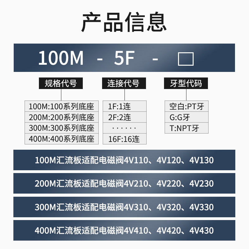 200M is suitable for 4V2 series solenoid valves ---- 200M-1F 200M-2F 200M-3F 200M-4F 200M-5F