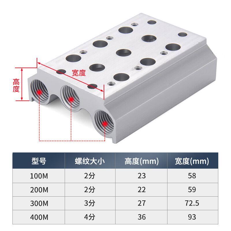 Yade passenger manifold solenoid valve base 4V210-08 busbar 100M200M300M pneumatic integrated block