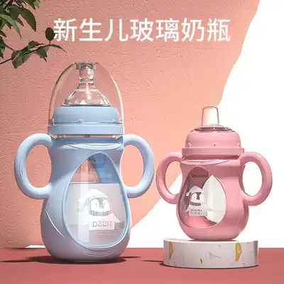 Newborn glass bottle, anti-fall, high temperature resistant, baby, anti-flatulence, baby, wide mouth diameter, children with straw duckbill