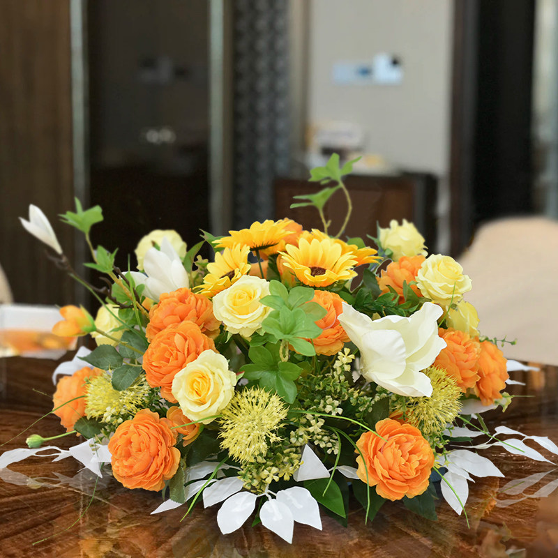 New private room hotel round dining table flower bar meeting table living room decoration sign-in decoration simulation fake silk flower art
