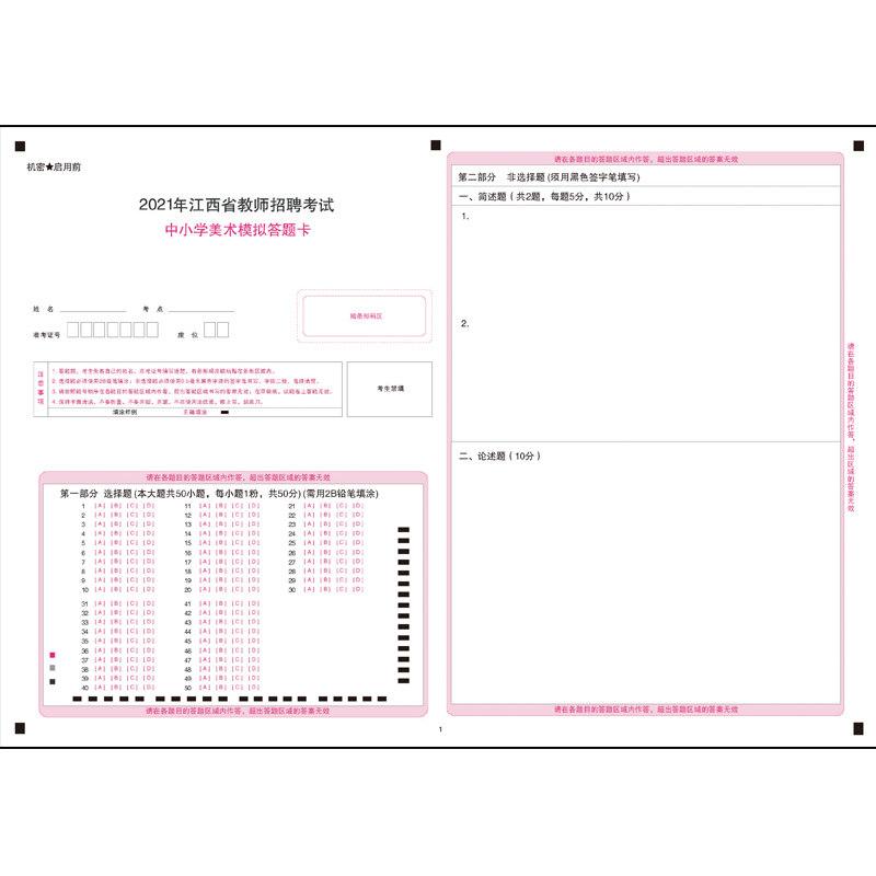 Spot 2021 Jiangxi Provincial Teacher Recruitment Examination Teaching Recruitment Primary and Secondary School Fine Arts Answers Card mock examination Special A3 Double sided rivaling Examination paper Support Custom Kindergarten
