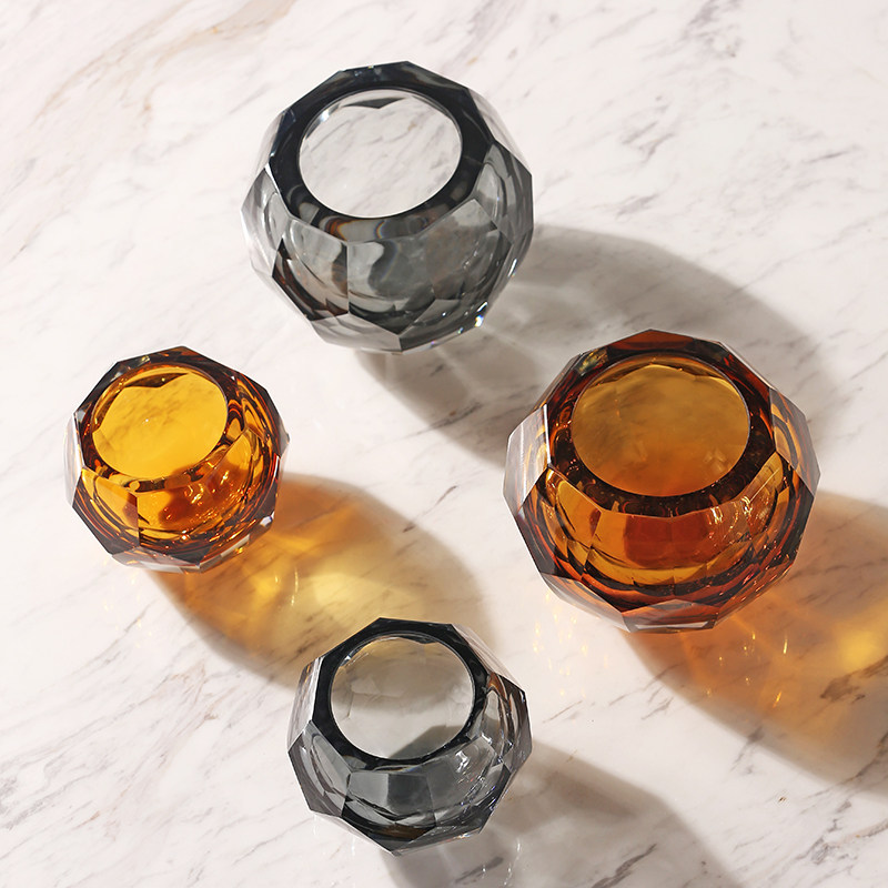 Modern simple crystal glass vase ornament living room flower arrangement model room glazed flowerware light luxury soft decorations