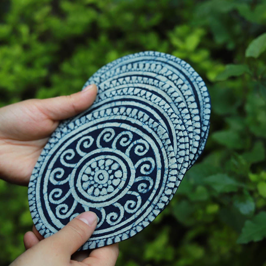 Water Fashion Wax Wax Cup Pad Guizhou Grass dyed plant dyed blue and insulation pad handmade tea cushion