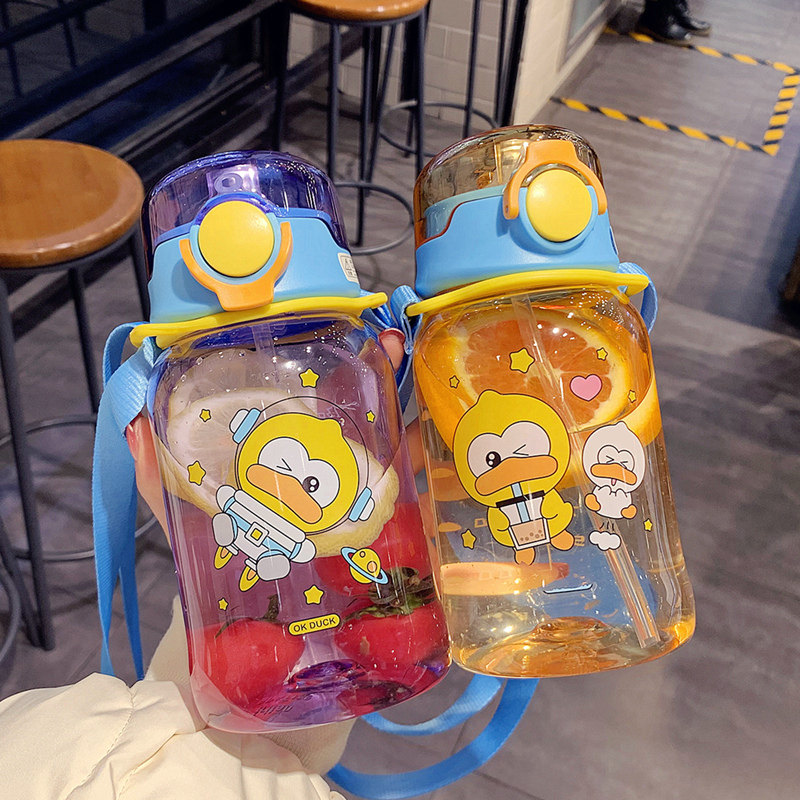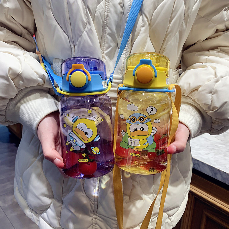 Korean fresh and lovely summer outdoor oblique strap children's kettle primary school students portable drinking straw cup for children