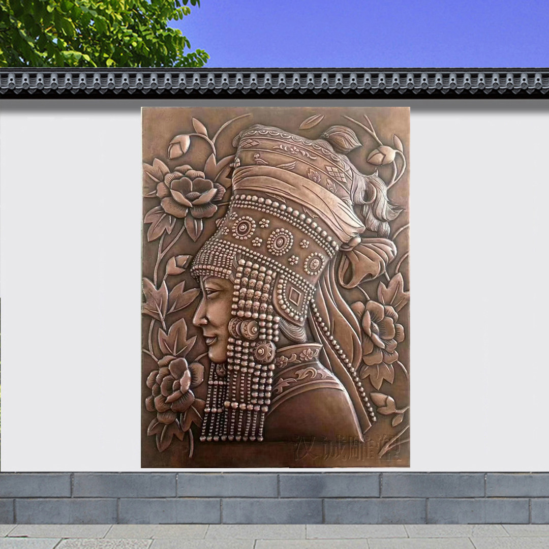 Custom forged copper red copper pure hand forged copper plate painting ancient figure prints campus hospital hotel square relief