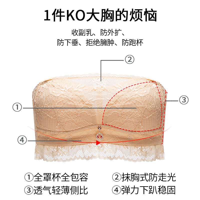 Large size strapless underwear for women with large breasts, small and thin, anti-sagging, beautiful back, huddle, anti-slip, strapless wrapping, bra bra