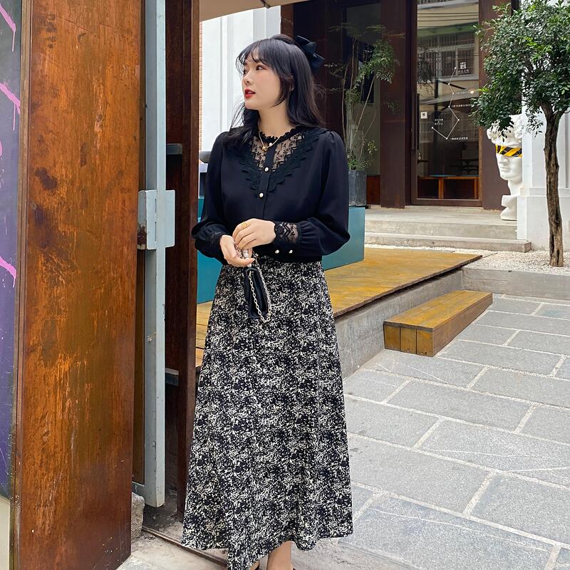 Multi-Treasure Large Size Women's Dress 2021 Spring Lace Splicing Shirt Temperament Fashion Floral Half Body Dress Kit T0202N