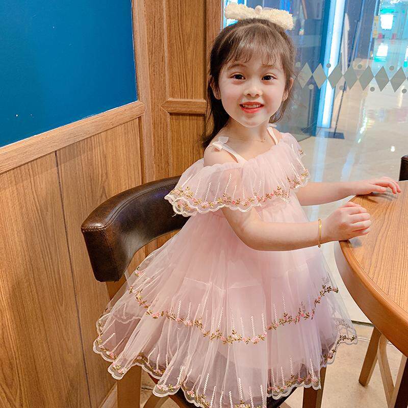 Little Girl Princess Dress Girl Baby Skirt Summer Dress New Girl Net Red Dew Shoulder Foreign Dress 3 Years Old