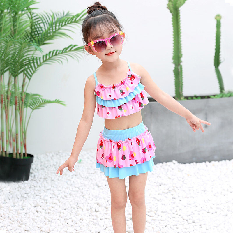2022 Little Princess Children's Two Bubbles Spa Bath Korean version Baby Skirt Style Suit Swimwear CUHK Tong Ping Kok