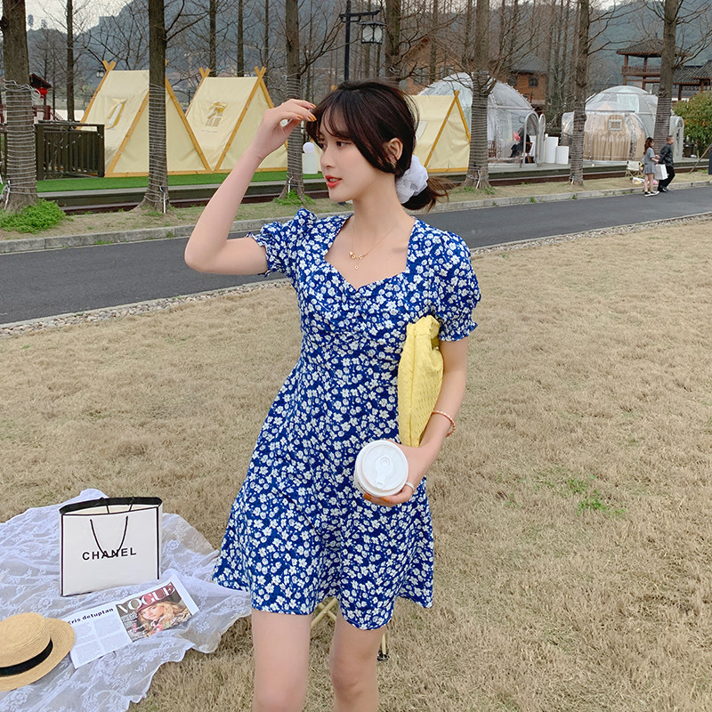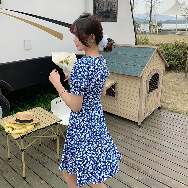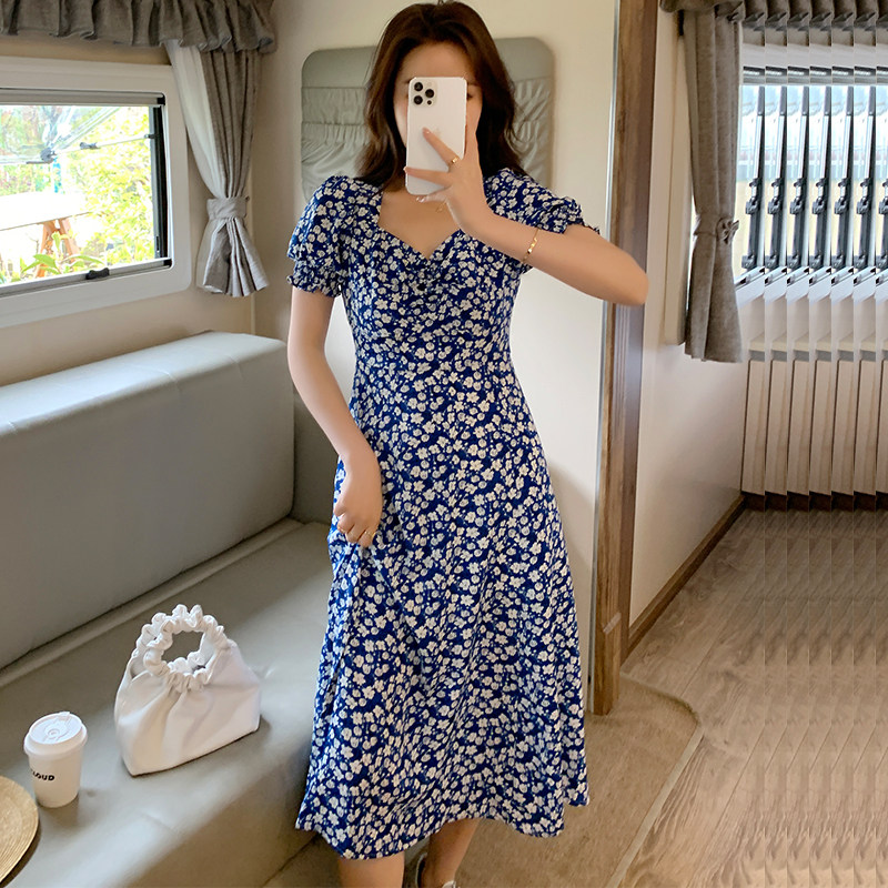 Large size dress for summer clothes 2022 Fat younger sister Yanites Aging Green Flowers Porcelain Crushed Flowers slim Belly Fairy Dresses