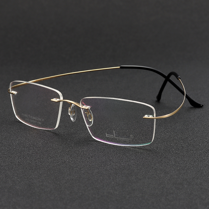 Pure titanium glasses frame myopia ultra-light men's models with degrees big face and small face can wear elastic non-clamping gold wire glasses