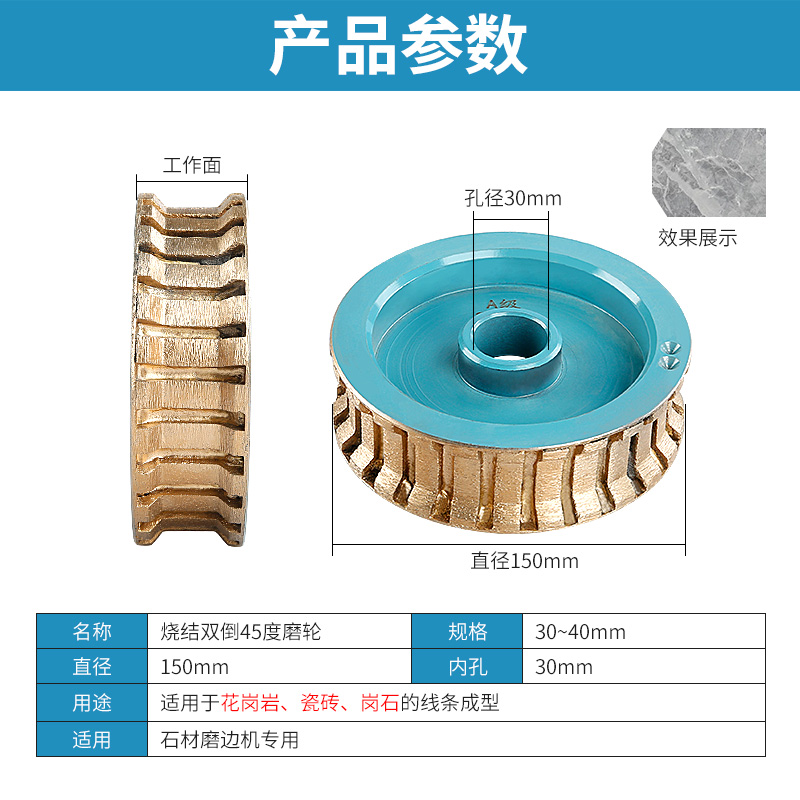 Diamond sintered edging wheel 150 diameter granite line wheel grinding wheel double reverse side sharper 45 degrees angle grinding head