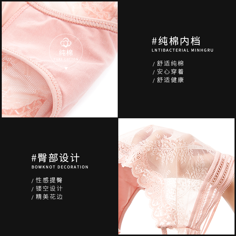Lady Lace Hollowed-out Triangle Briefs Women Seductive Comfort Pro-Skin Pure Cotton Crotch Breathability Sensation Shorts Head Ice Wire