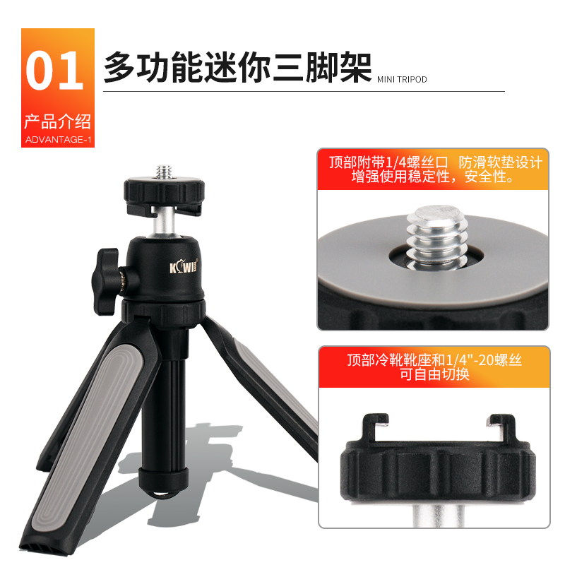Mini desktop tripod (black) Mini desktop tripod phone clip (black) Mini desktop tripod phone clip GOPRO base (black)