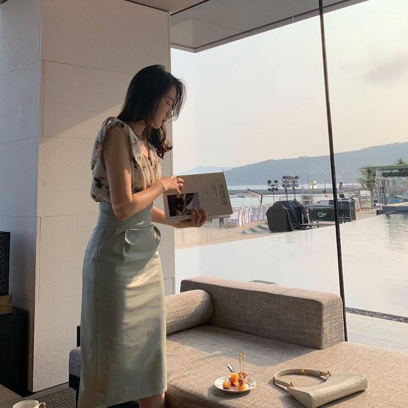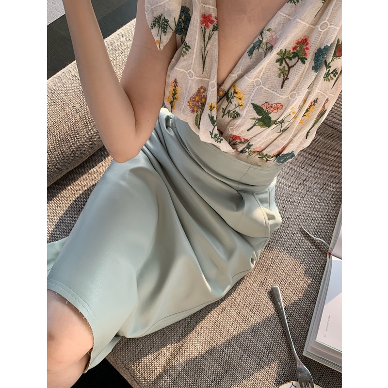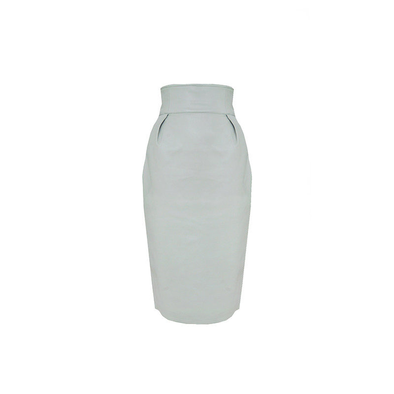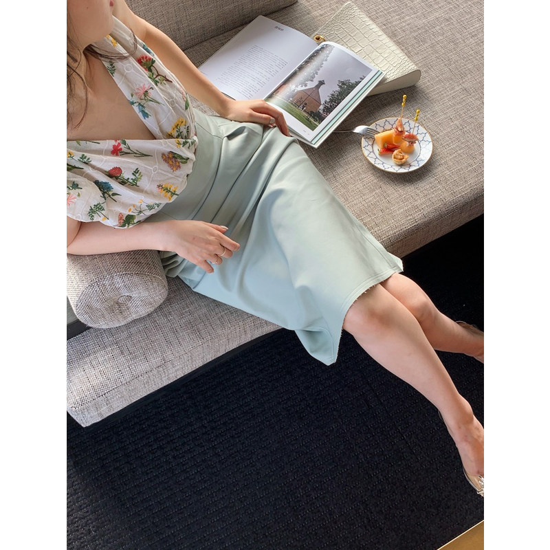 lowey ice cream green baby cotton soft texture imitation leather high waist half body dress with long version wrapping hip skirt half skirt
