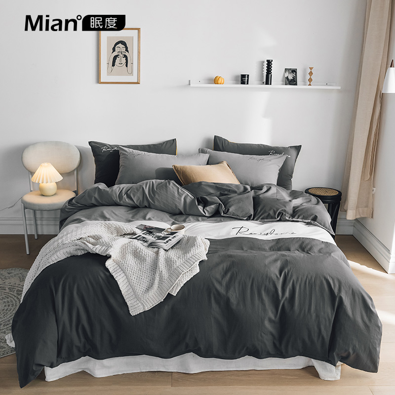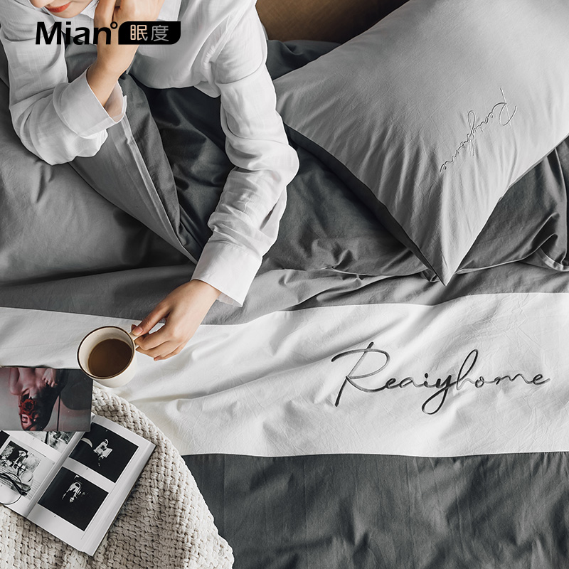Four - piece shade shaft embroidery four - piece set 4 3 - piece set for 3 beds Nordic in style singles bed condom